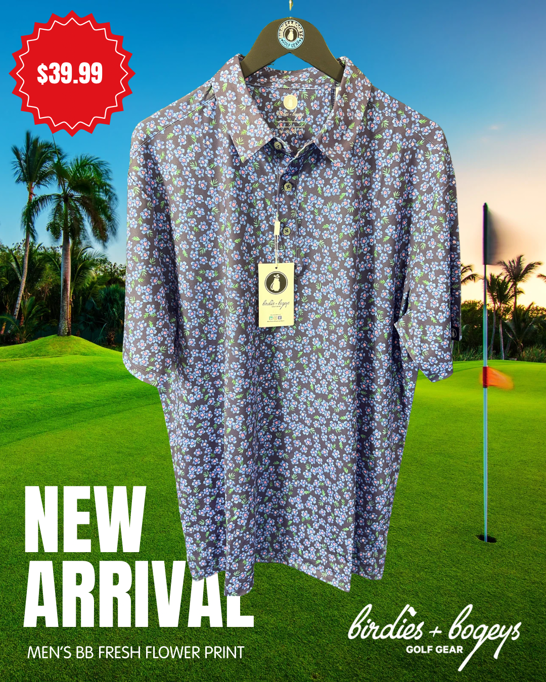 Experience unmatched performance and comfort with our B&B Fresh Flower Men’s Polo. Made with a 92/8 poly spandex blend, this polo offers the perfect balance of flexibility. durability and a bold print. Elevate your game with this stylish and functional polo.